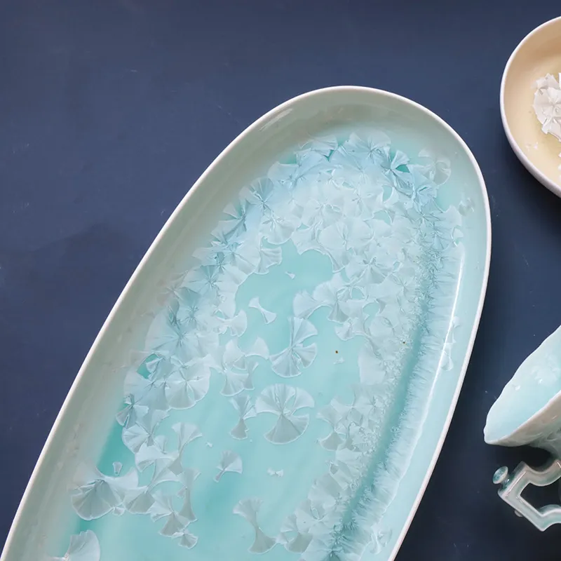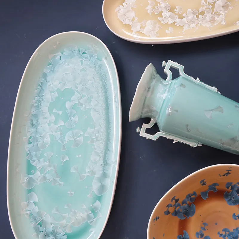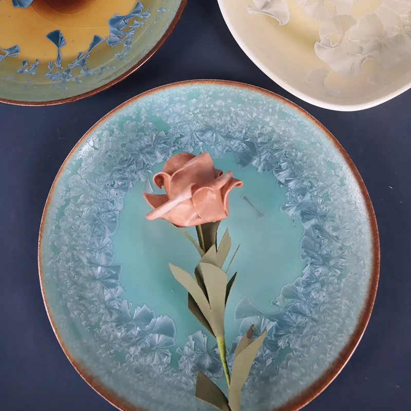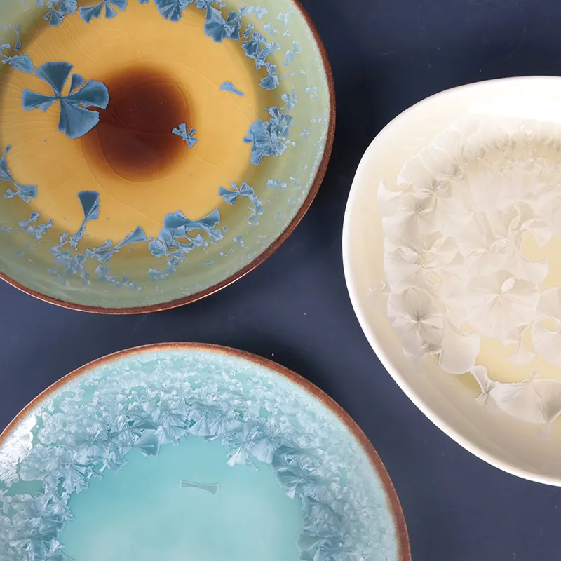 أطباق عشاء من السيراميك بالجملة، أطباق تقديم الحلوى المصنوعة من الصقيل البلوري مخصصة