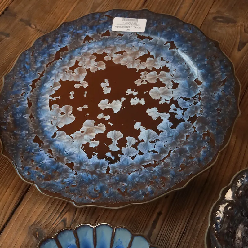 تتميز أطباق العشاء المصنوعة من السيراميك بالجملة بنقوش فريدة من نوعها وغير منتظمة من الكريستال الزجاجي باللونين الأزرق والأبيض، كما أنها مصنوعة من مواد آمنة على الطعام وخالية من الرصاص. مثالية للشراء بالجملة لتلبية احتياجات الطعام المختلفة. مرحبًا بكم في الاتصال بنا للحصول على مزيد من المعلومات عن المنتج!