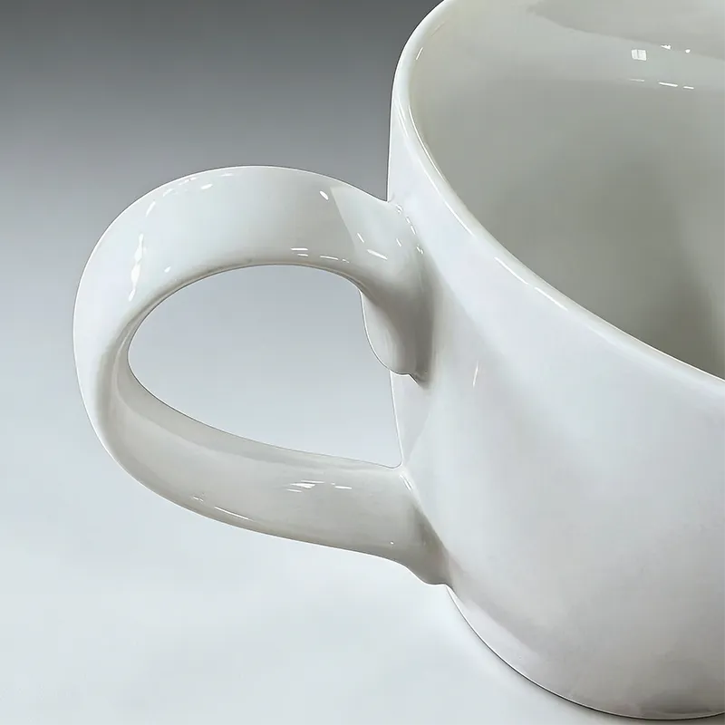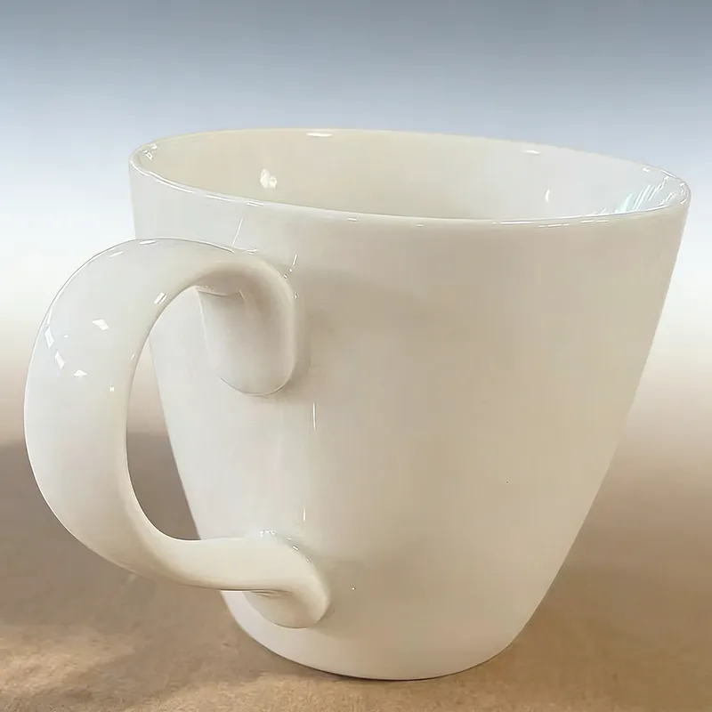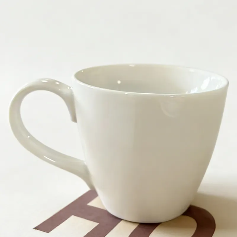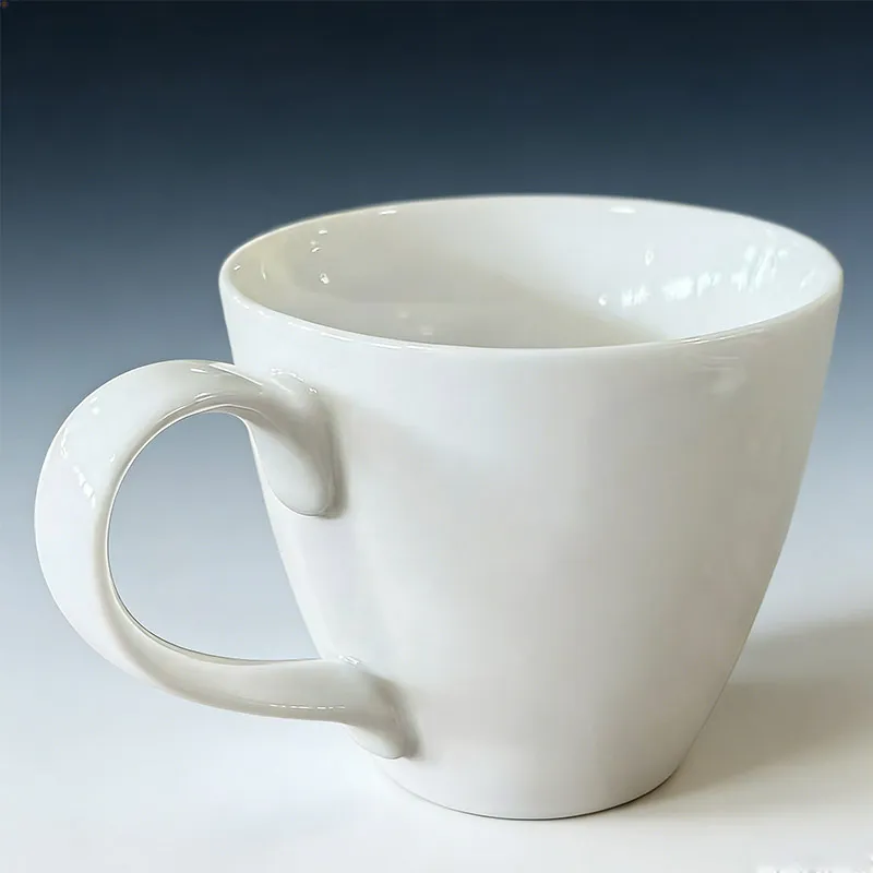 注文のコーヒーマグはギフト、バルクのハンドルが付いている白い陶磁器の茶ミルクのコップのために最小になる