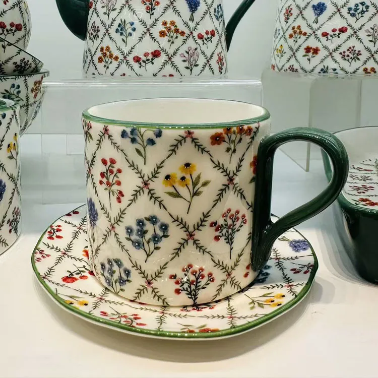 Custom cappuccino cups, American country styling, feature under-glaze decals and food-grade porcelain. Perfect for cafes, hotels, and wholesale gifts, we also offer OEM options. Contact us for MOQs and customization options!