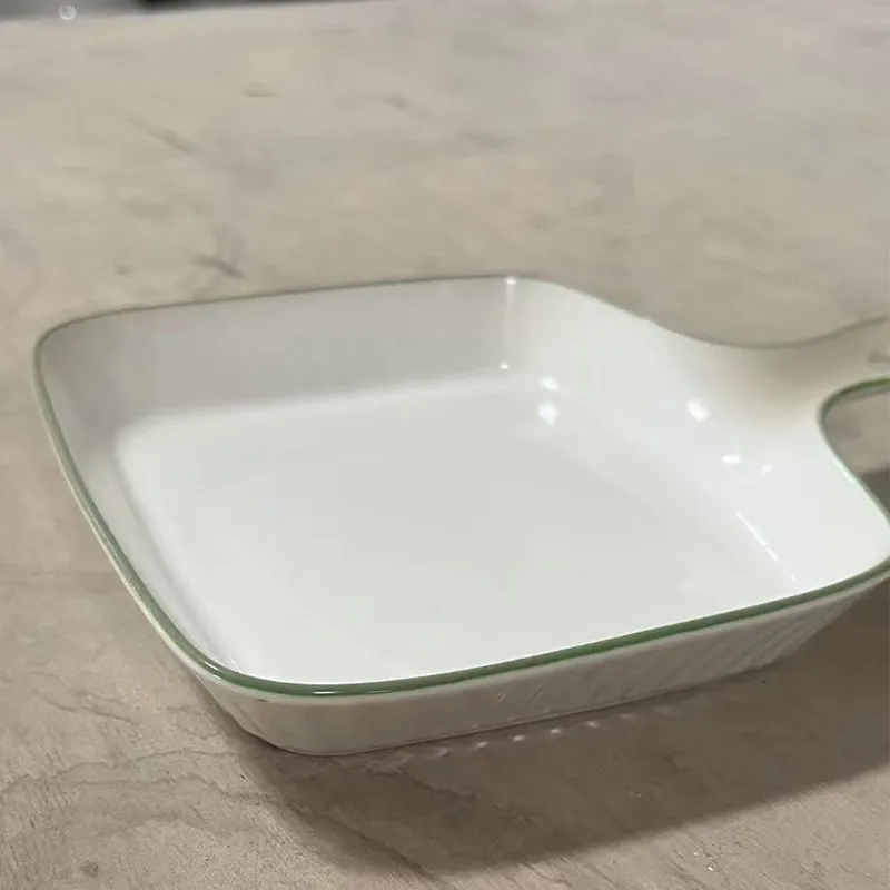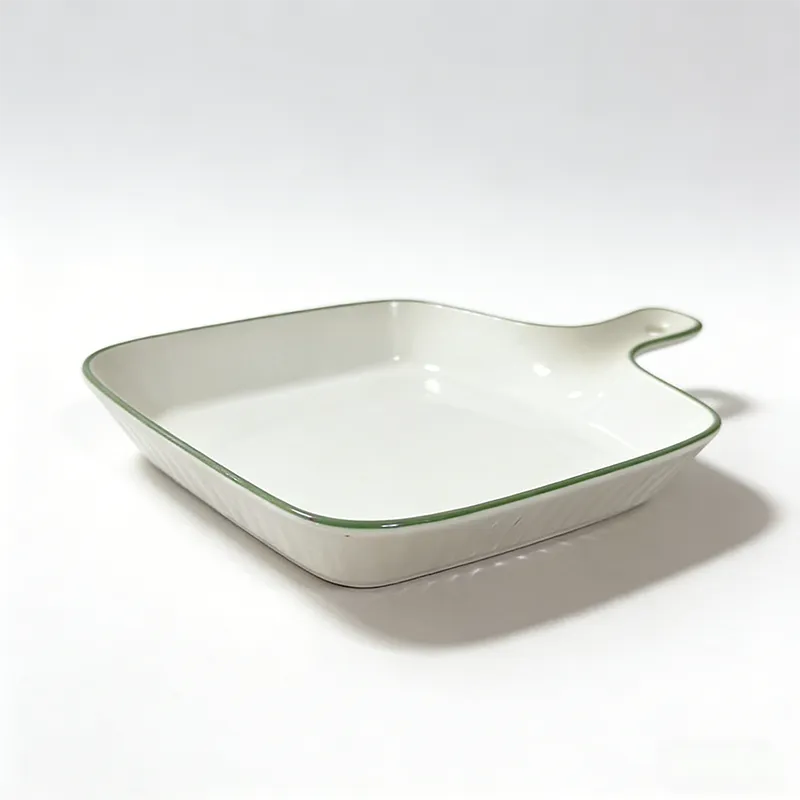 Custom Ceramic Bakeware, Square Baking Pan & Cheese Plate with Single Handle in Bulk