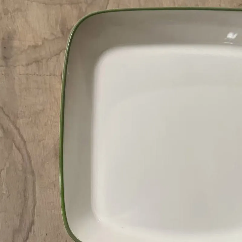Premium Craftsmanship: Rounded edges prevent bumps and chips, while the evenly applied green rim adds elegance and a distinctive look, enhancing the visual appeal of your kitchenware.