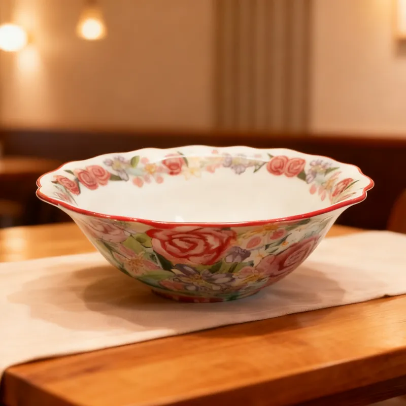 Color Matching: The rim of the bowl and the base are red, the inner side of the bowl is white, and the main pattern area is rich and diverse in colors. Colors such as red, pink, purple and green set off each other, making it bright and layered.