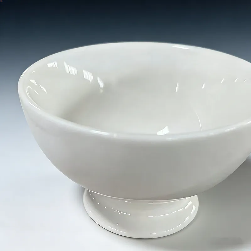Smooth Glazed Ceramic Texture: Featuring a high-quality white glaze, the surface delivers a uniform, glossy finish with a soft, refined luster. The delicate texture highlights premium ceramic craftsmanship suitable for commercial dining environments.