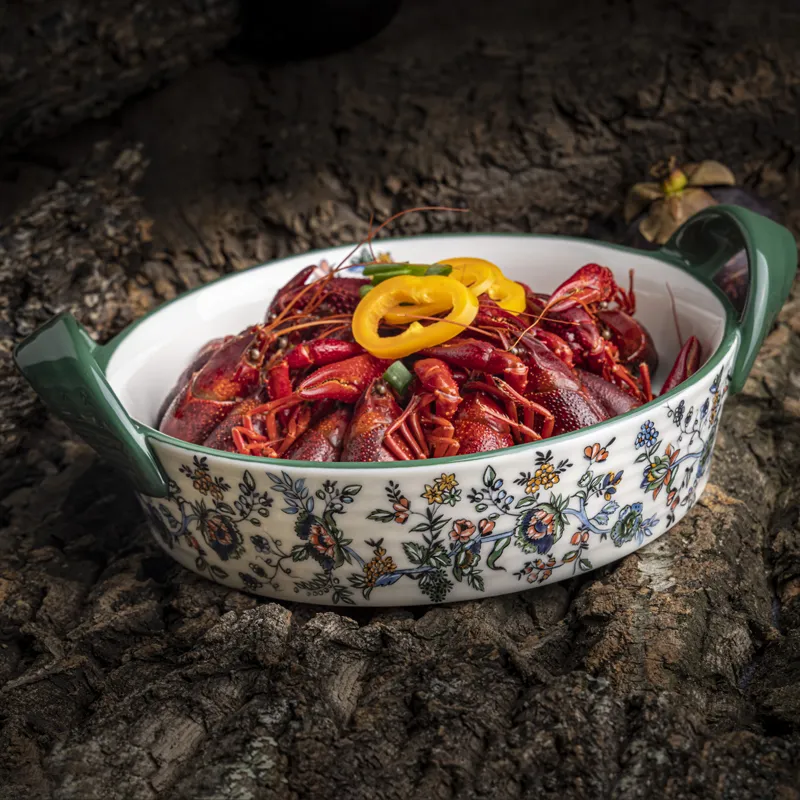 Wholesale Ceramic Baking Dish, Hand Painted Double Ear Bakeware for Hotel Supplier