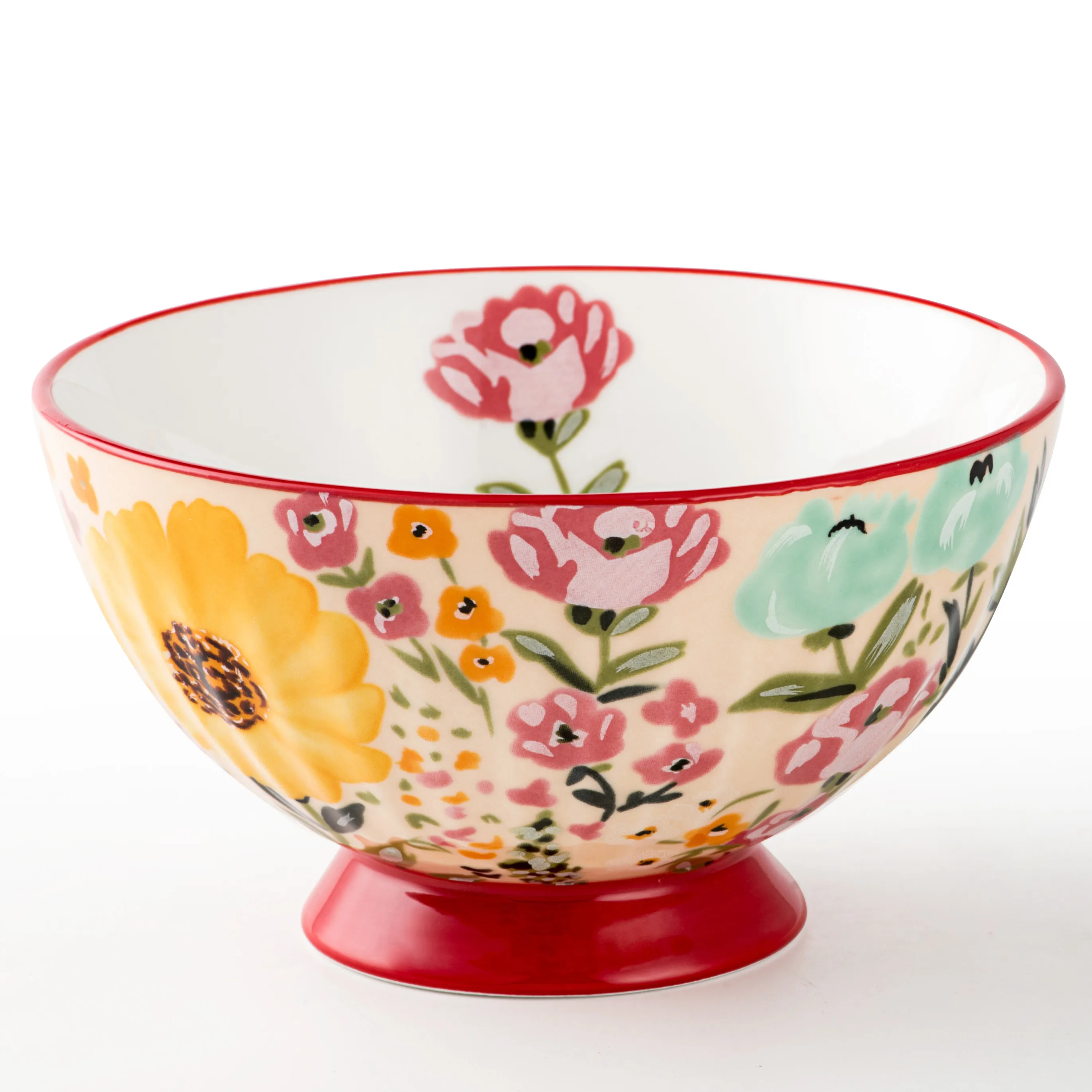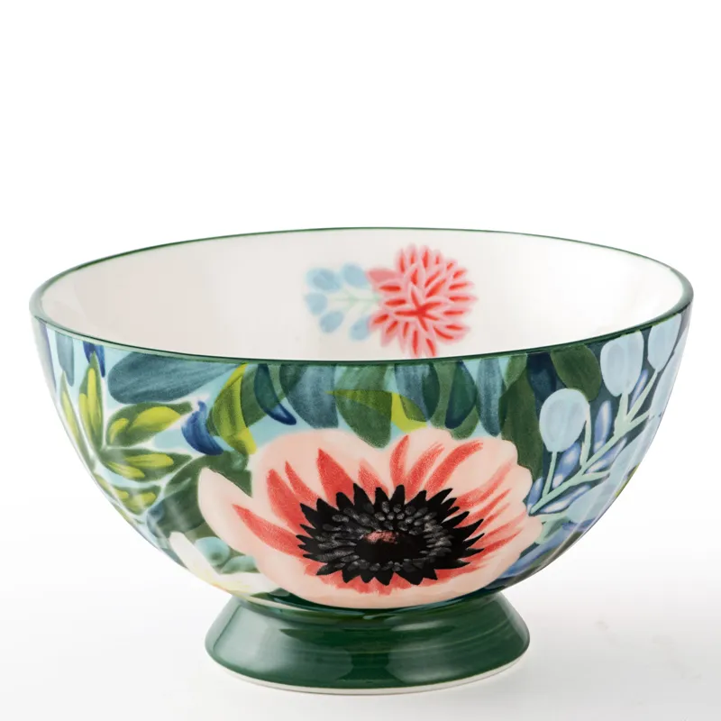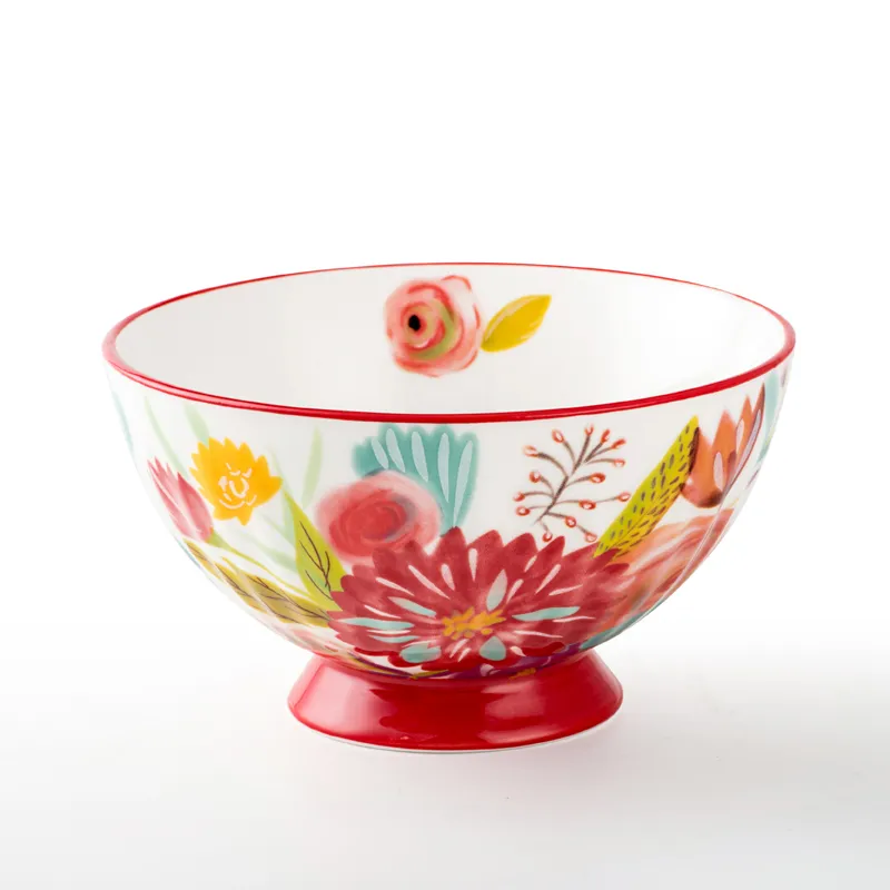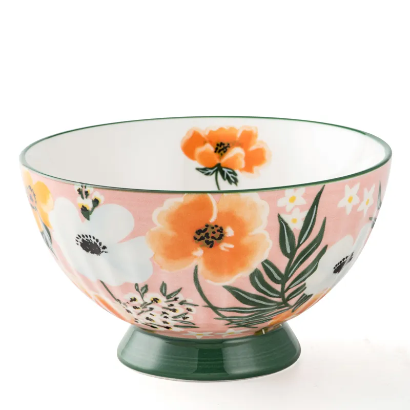 Wholesale Ceramic Bowls, Hand Printed Floral Bowl Set for Salad Family Party Dessert